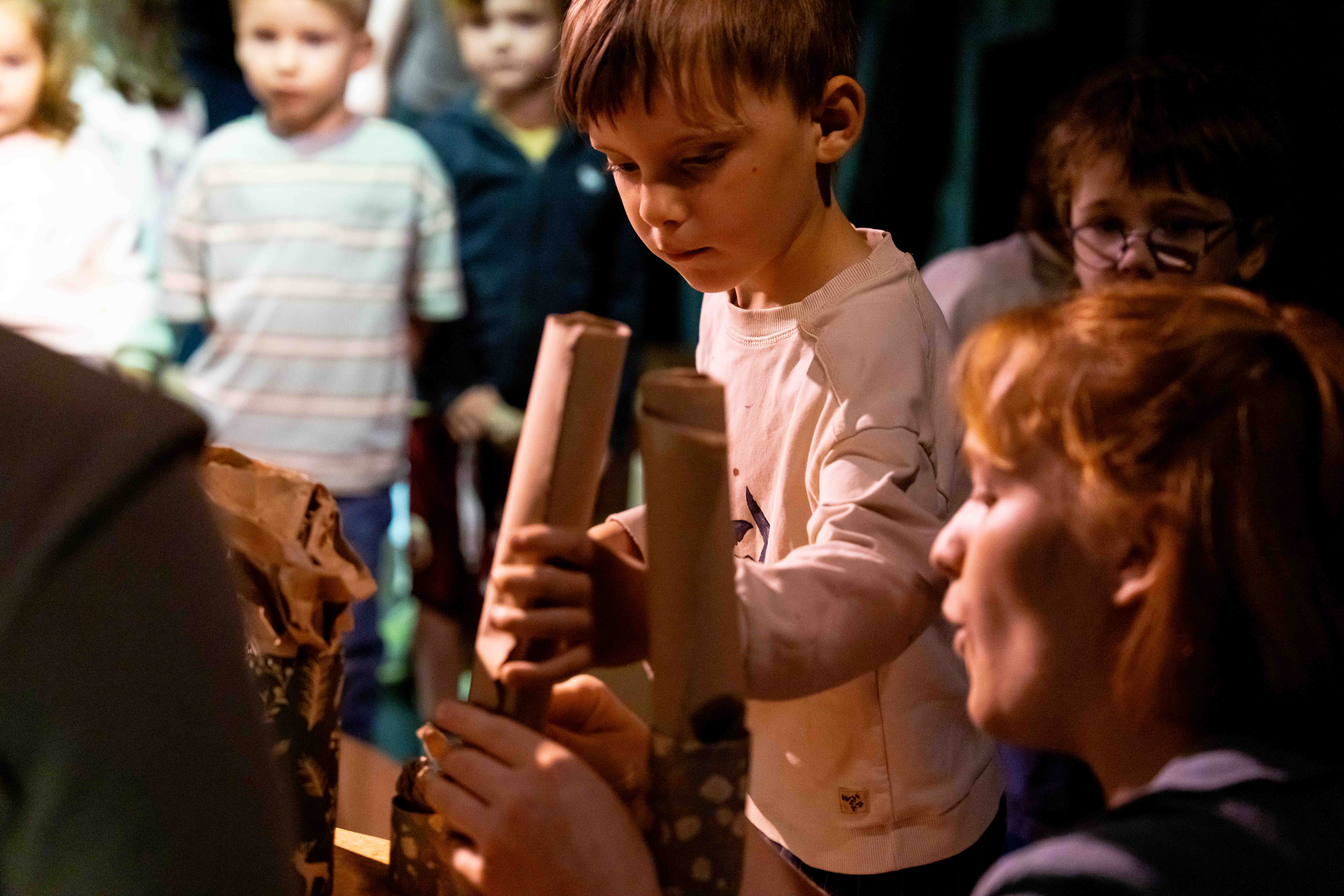 Og vent litt… hysj! Hører du knitring fra rullen med bølgepapp? En liten larve…?